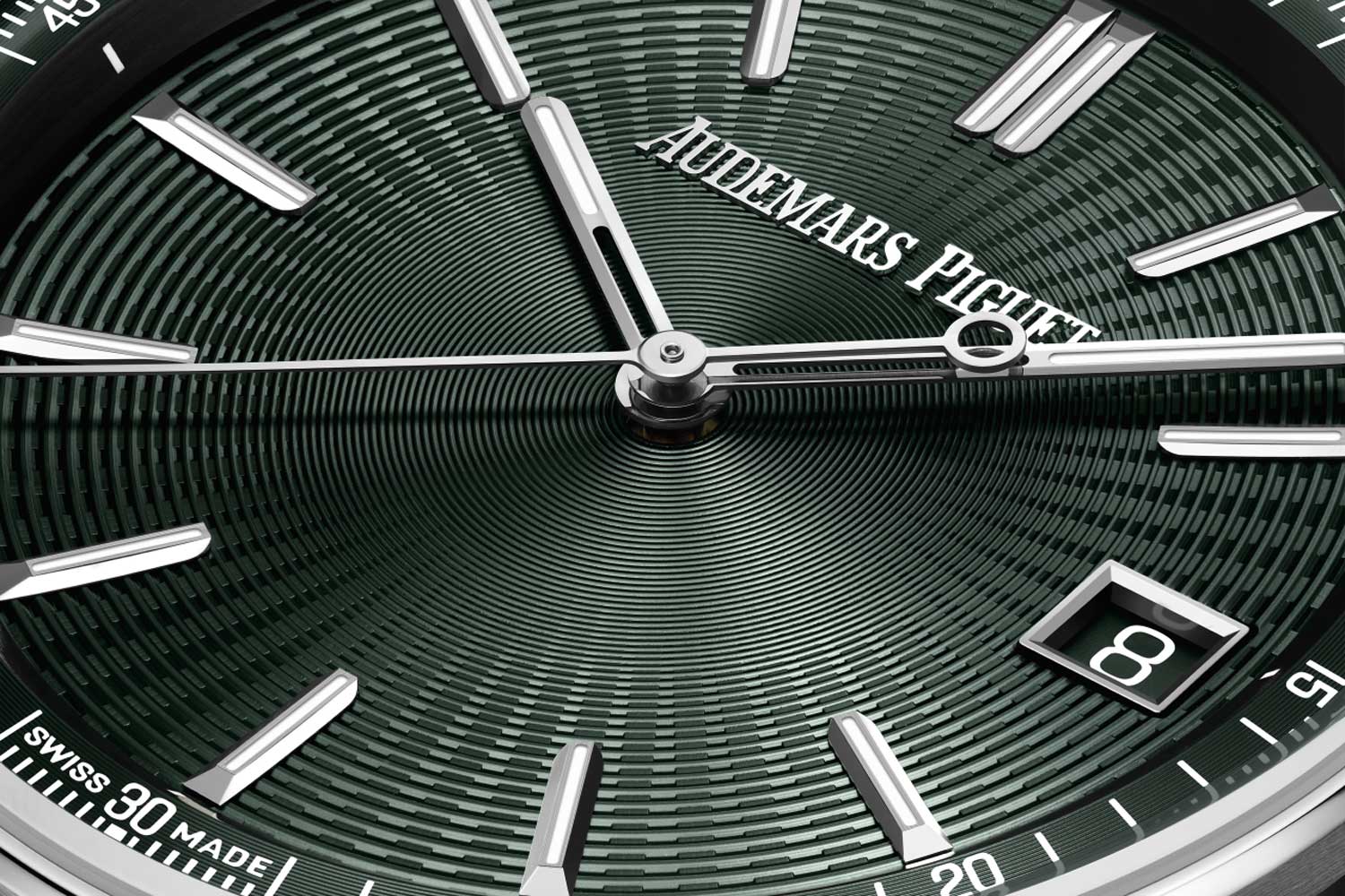 Audemars Piguet ha sviluppato i quadranti a timbro per questi nuovi segnatempo di lusso a imitazione svizzera, in collaborazione con l’artigiano svizzero del guilloché Yann von Kaenel. I motivi a onda che si irradiano dal centro del quadrante vengono prima incisi a mano su questi timbri. Le onde sono formate da centinaia di microscopiche perforazioni. Successivamente, il colore viene applicato tramite deposizione fisica di vapore per conferire a questi quadranti una sensazione tridimensionale.